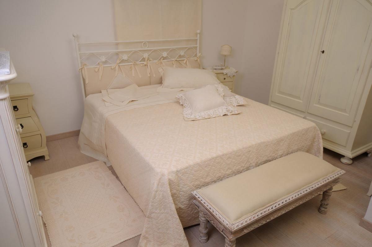 Copriletto in cotone al 100%, per due piazze, colore panna con disegno rombo catenella, lavorazione a “pibiones”.